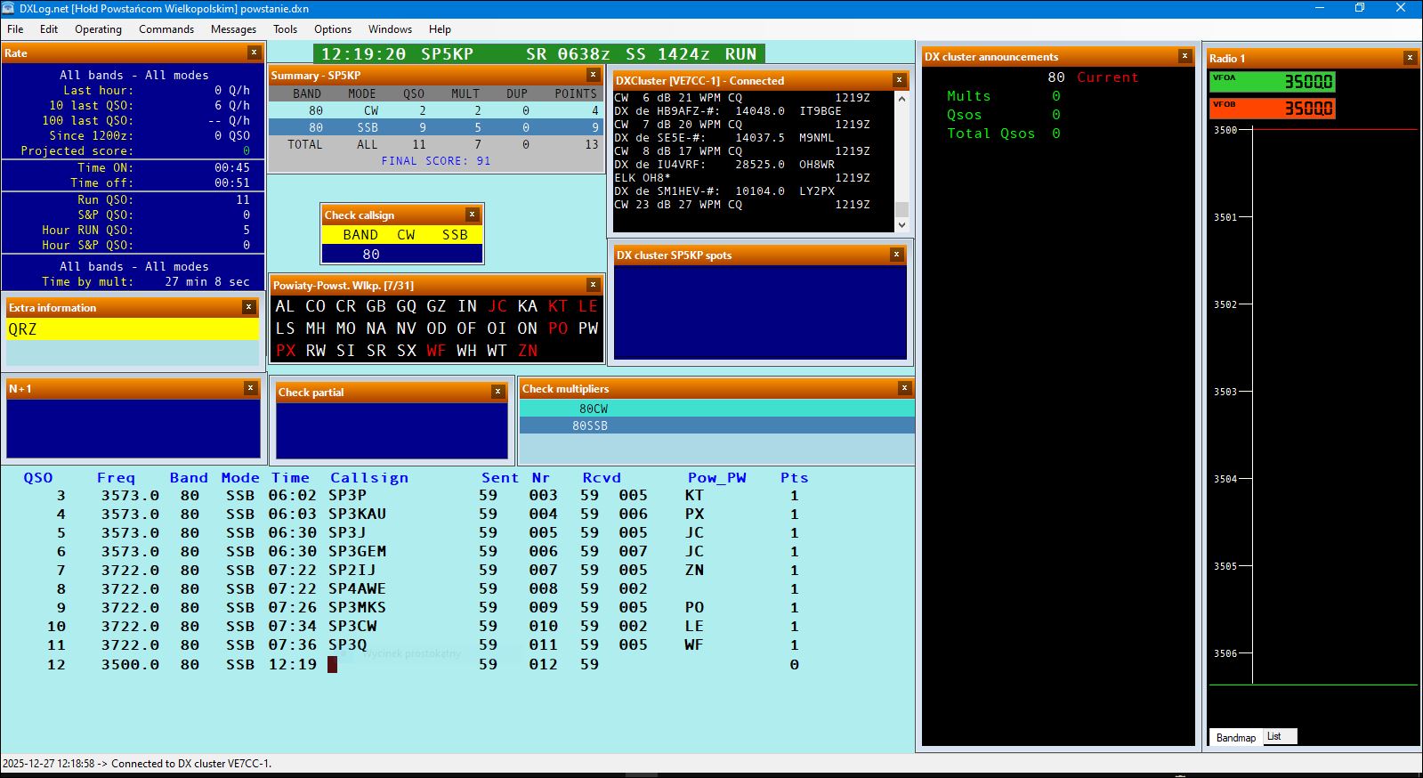 Kliknij poniżej aby zobaczyć wygląd ekranu DxLog-u skonfigurowanego do HPW