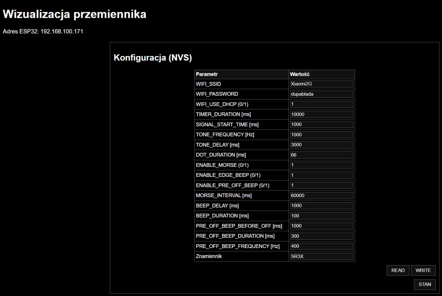 -podzielono stronę WWW na dwie osobne strony: stan przemiennik i ustawienia, dodano przyciski przełączające pomiędzy stronami.