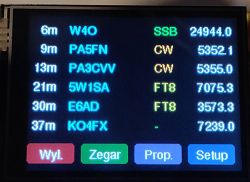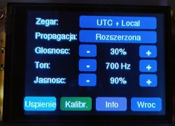 - Setup (możliwość wyboru rodzaju zegara, monitora propagacji, głośności, tonu i jasności ekranu)