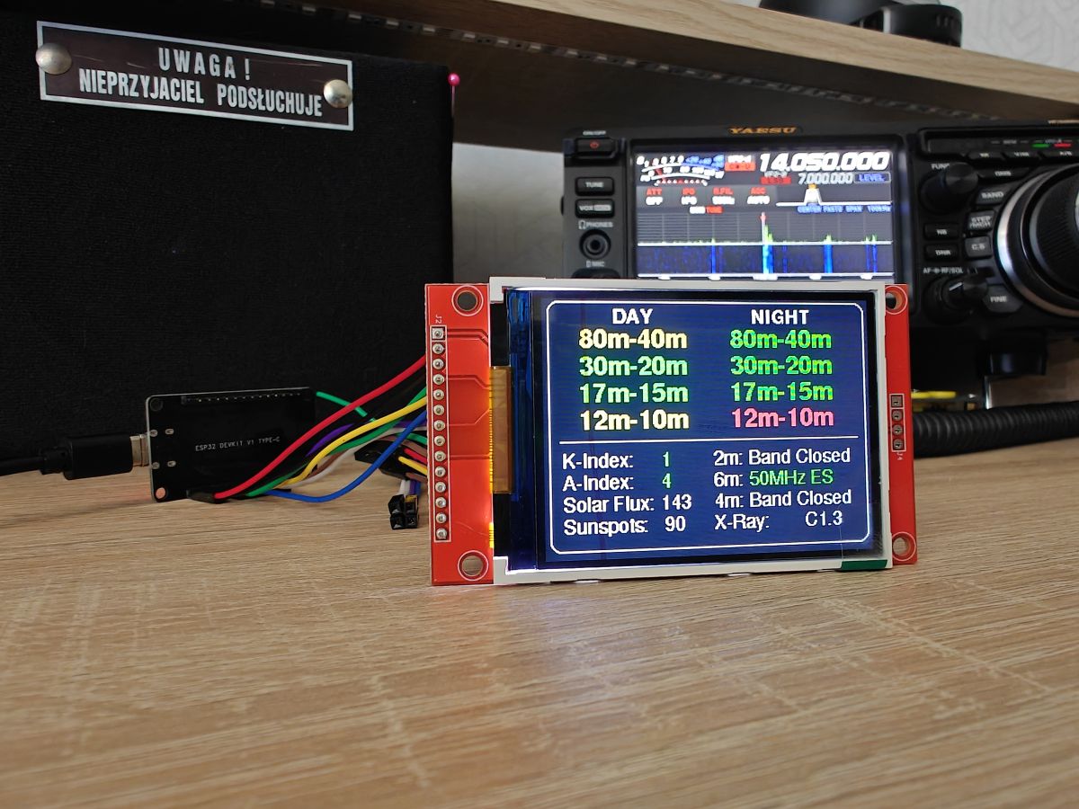 Pobierz projekt z GitHuba: https://github.com/canislupus11/HamQSL-XML-Parser/ Otwórz plik .ino w Arduino IDE Wybierz odpowiedni port COM i płytkę ESP32 Dev Module Wgraj kod do płytki