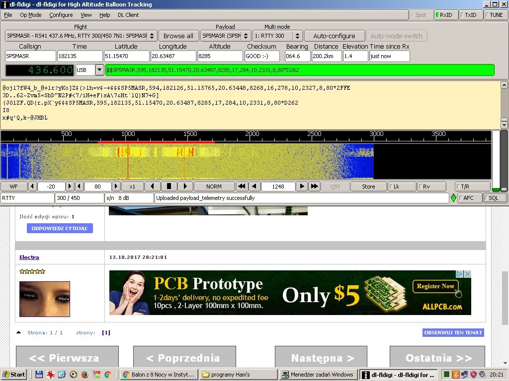 UŻYTKOWNIK ZABLOKOWANY | Planowany jest również lot balonu z trackerem. Startem zarządza Rysiek SQ9MDD. Parametry są już na FL-digi i na HABBUBie Znak - SP5MASR