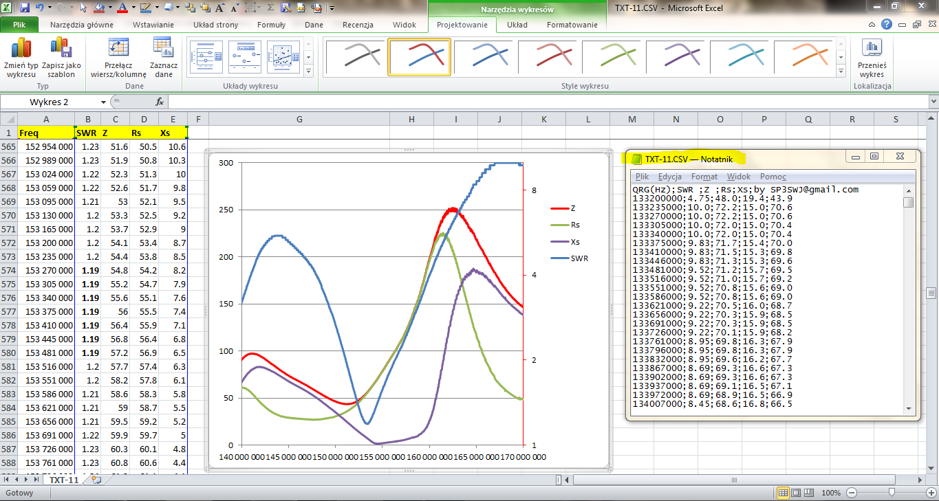 :-) dane można odczytać w zwyczajnym notatniku albo robić własne wykresy w XLS ...