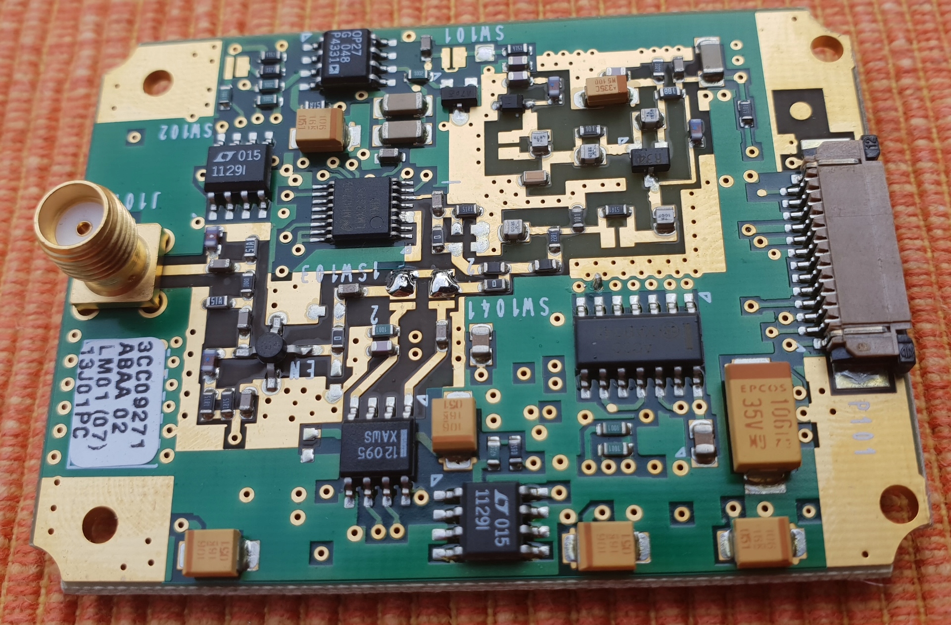 że niby polaryzacja VFO. tego nie wiem bo płytka nie moja ale raczej plus bo większe napięcie na waricapie da wyższą częstotliwość ale to fakt że coś może być nie tak w pętli z OPA27 bo samo programowanie syntezy działa. TCXO 13MHza VFO ok. 1.2 GHz 'free run'